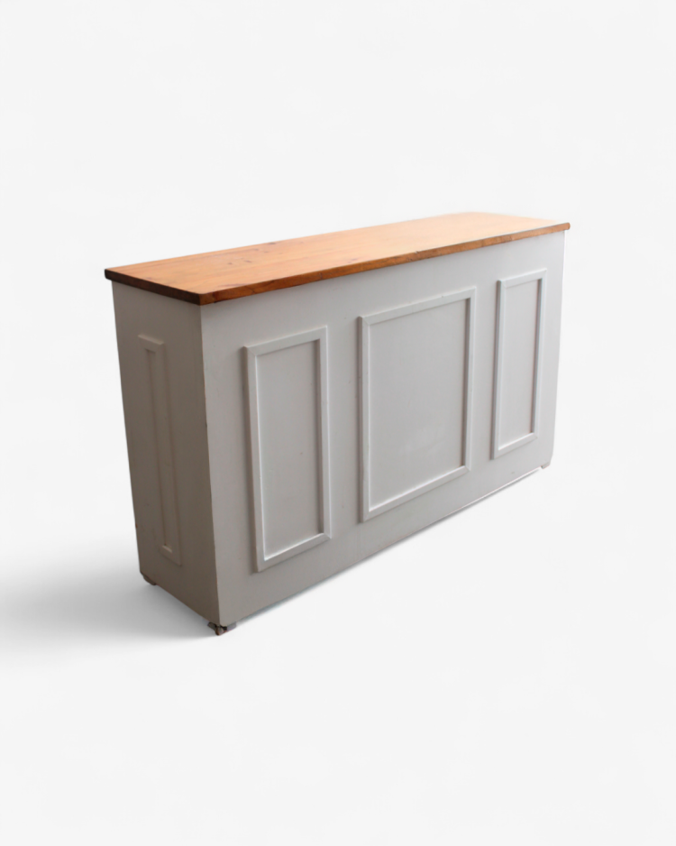 El alquiler de la barra madera romantic vintage 1,80 m añade un punto de servicio con encanto clásico y aire nostálgico a cualquier evento.